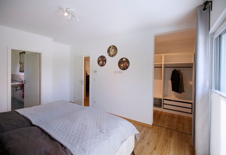 Besonderen komfortabel ist die Ankleide und ein Badezimmer mit Badewanne und Dusche en-suite - beides direkt vom Hauptschlafzimmer begehtbar. Zwei weitere Zimmer bieten sich als Kinderzimmer, Gästezimmer oder Arbeitszimmer an und lassen sich vielseitig nutzen. Ein Technikraum, ein modernes Bad und ein separates Gäste-WC runden das Gesamtpaket ab und bieten alle notwendigen Annehmlichkeiten.