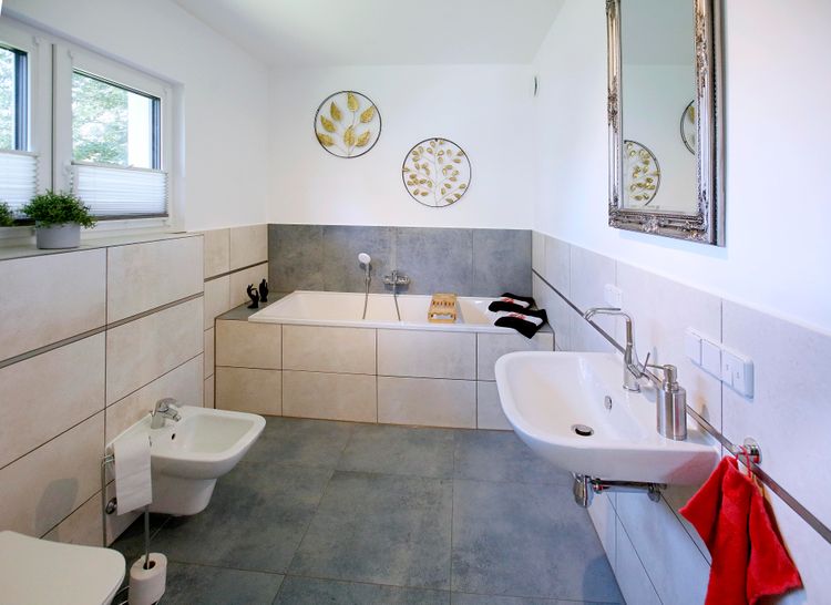 Als Effizienzhaus 40 konzipiert, erfüllt dieses Haus hohe Anforderungen an Energieeffizienz. Optional ist das Haus auch als Effizienzhaus 40plus erhältlich, für Bauherren, die noch höhere Standards in Sachen Nachhaltigkeit und Energieeinsparung anstreben.